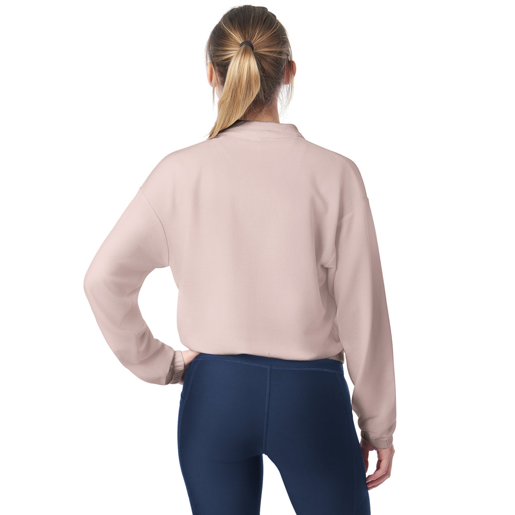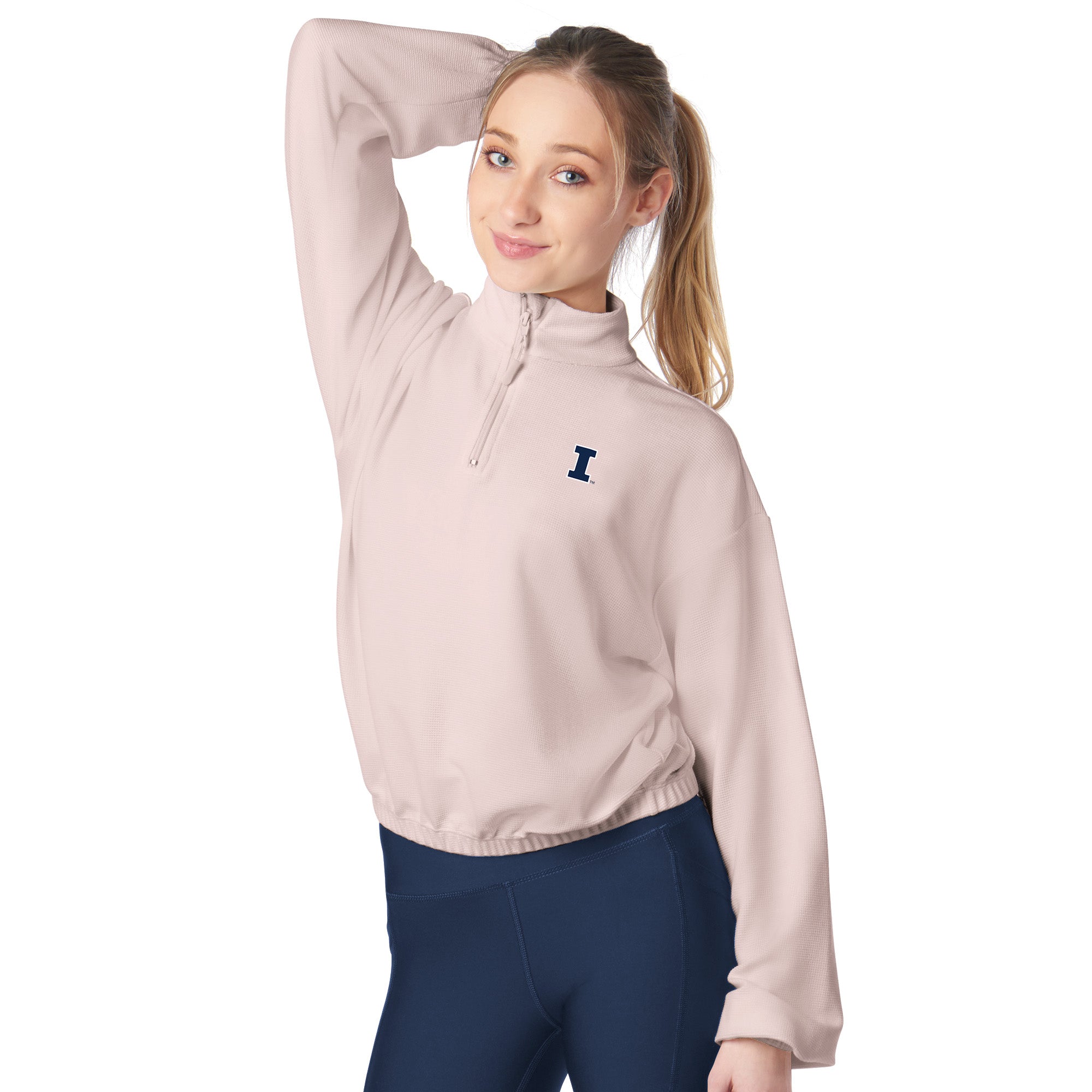 Go Illini! This Illinois pullover is perfect for wearing around campus or to games. This women's quarter-zip features a light pink waffle knit body with a navy Block I on the left. This new Illinois jacket is great for showing your Fighting Illini spirit! This is an officially licensed collegiate product.