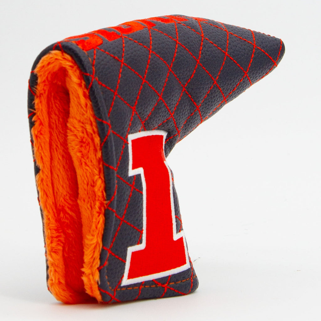 Go Illini! This Illinois putter cover is perfect for showing your orange and blue spirit out on the course! This blade putter cover features a quilted navy body with orange stitching, a fluffy orange interior, and orange Block I embroidered on the side that will really make your Illinois spirit shine through! This is an officially licensed collegiate product.
