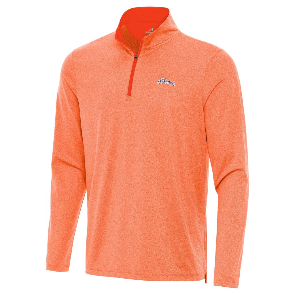 I-L-L! Pick up this Illinois quarter-zip to impress your friends! Once they see you wearing this Antigua pullover, they’re going to want one too! This U of I q-zip features a light heather orange body with a navy script Illinois embroidered on the left chest perfect for showing your Illini spirit at games, tailgates, or just around campus. This is an officially licensed collegiate product.