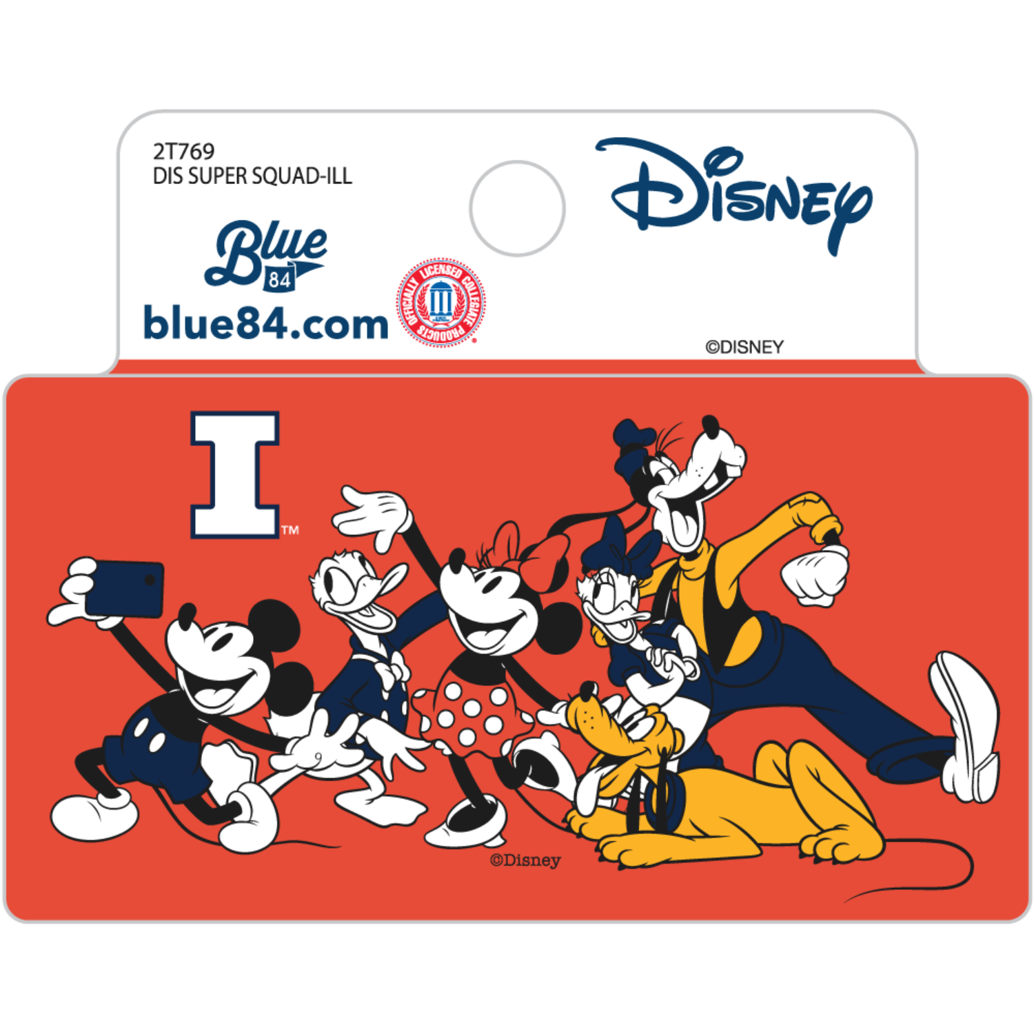 I-L-L! Pick up this Illinois sticker to really show your Illini spirit! This sticker features an orange background with the Disney squad alongside a Block I that will make an unforgettable addition to your Illini collection! Get one online or in-store today! This is an officially licensed collegiate product.