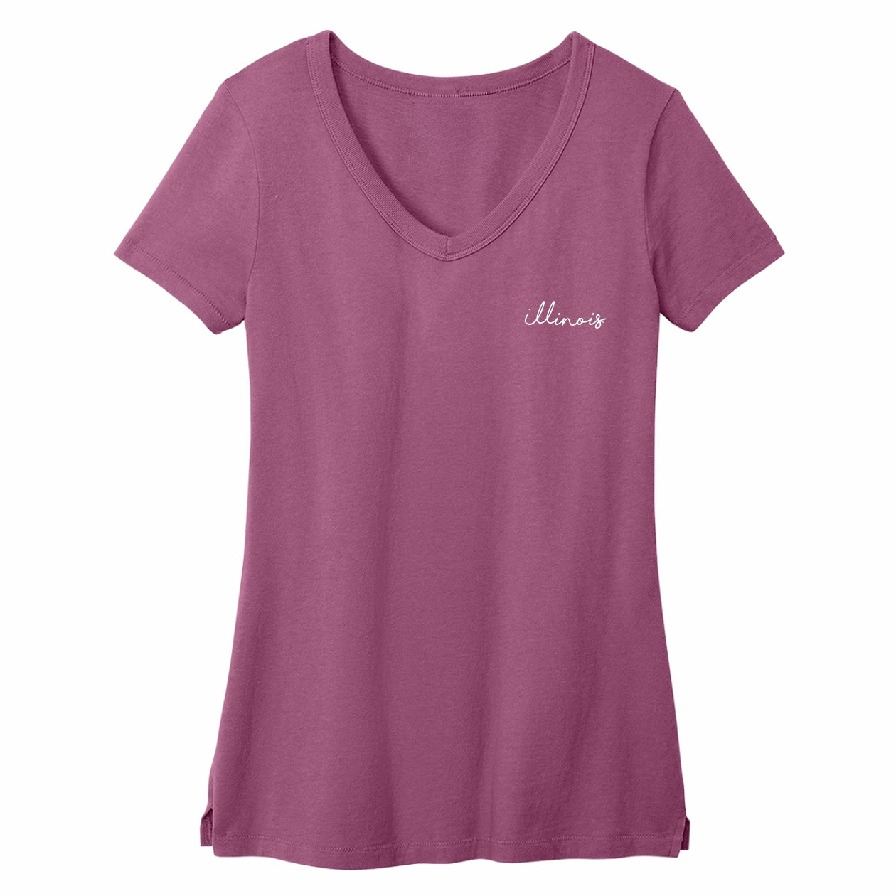 Go Illini! This Illinois t-shirt is perfect for wearing around campus or to games. This women's v-neck tee features a purple body with a white script Illinois. This new U of I shirt is great for showing your Fighting Illini spirit! This is an officially licensed collegiate product.