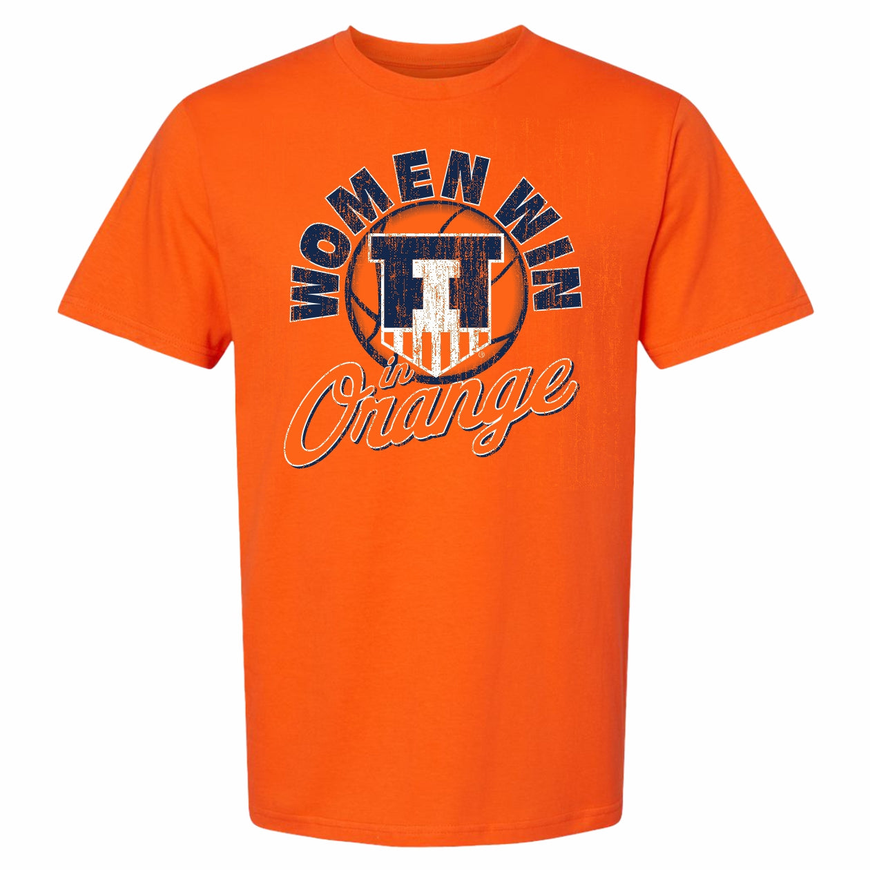 Go Illini! This Illinois t-shirt is perfect for wearing around campus or to games. This Illini tee features an orange body with a "Women Win in Orange" basketball design. This Illinois women's shirt is great for showing your Fighting Illini spirit! This is an officially licensed collegiate product.