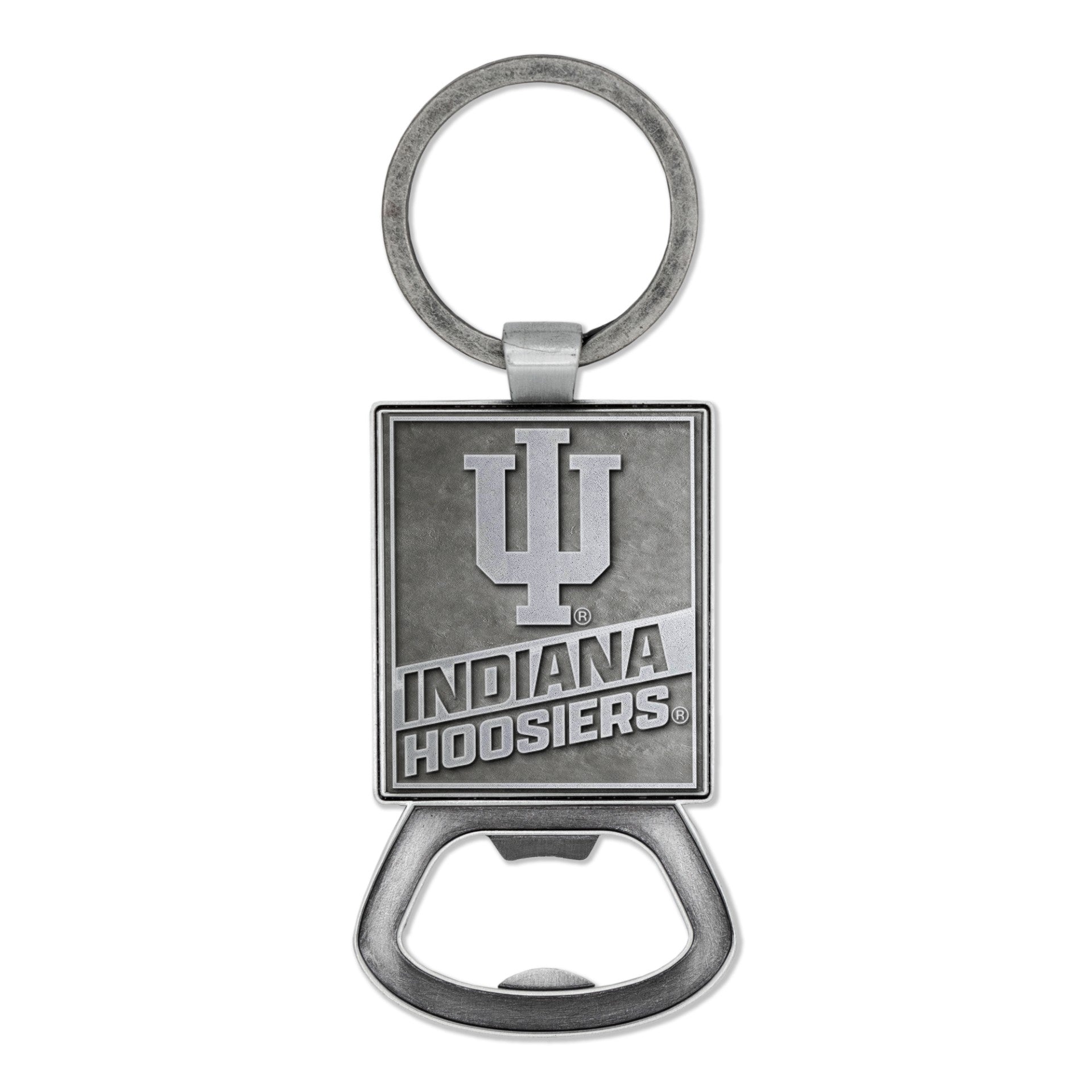 Show your Hoosier pride with this new Indiana bottle opener! This bottle opener features a pewter body with an IU trident alongside an "Indiana Hoosiers" and loop to go on a keychain that will make a great addition to your Indiana collection. Make sure to pick up this new IU merch in-store or online! This is an officially licensed collegiate product.