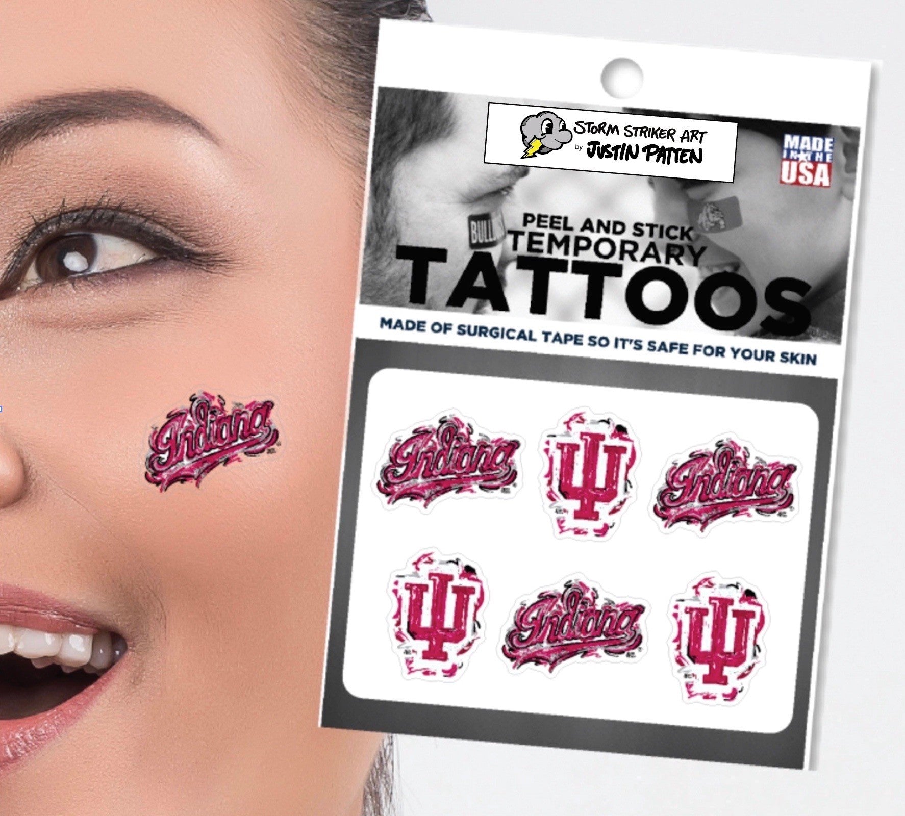 Go Hoosiers! This Indiana face sticker set is perfect for tailgates/gamedays! This sticker set features 3 IU tridents and 3 Indiana scripts in a hand-drawn style that will make your Indiana spirit shine through! This is an officially licensed collegiate product.