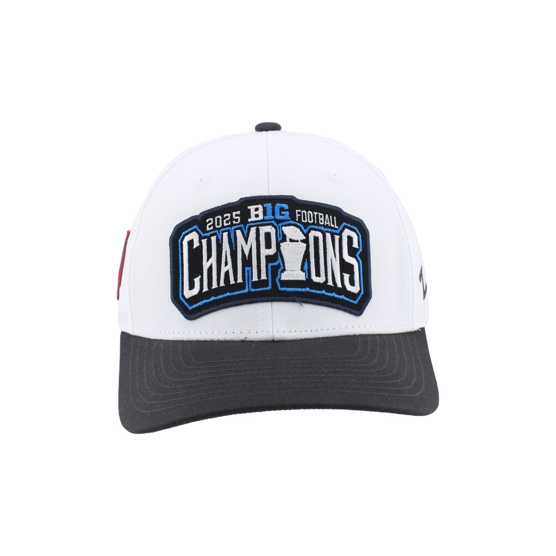 Go Big Red! Pick up this Indiana Football 2025 Big Ten Champions hat to show your Hoosier spirit everywhere you go. This B1G Champs hat features a white body with a large multi-color B1G Football Champions patch on the front as well as a red IU trident embroidered on the right side, and a black brim perfect for Hoosier fans to celebrate the team's historic season. Once people see you in this IU hat, they’ll want one too! This is an officially licensed collegiate product.