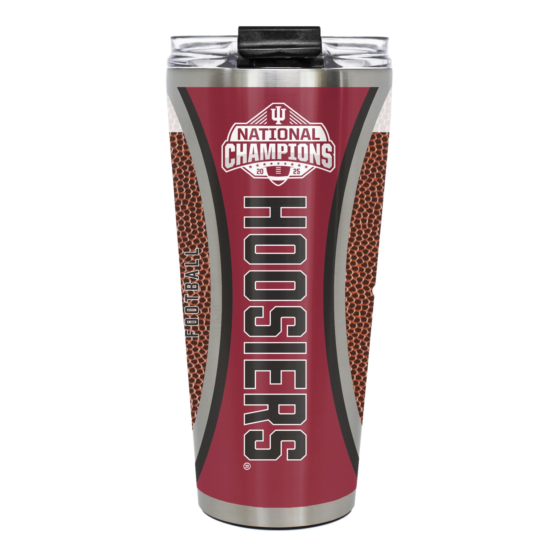 Show your Hoosier pride with this new Indiana tumbler! This 32oz tumbler features a red/football-style body with a National Champions design that will make a great addition to your Indiana collection. Make sure to pick up this Hoosiers tumbler in-store or online! This is an officially licensed collegiate product.