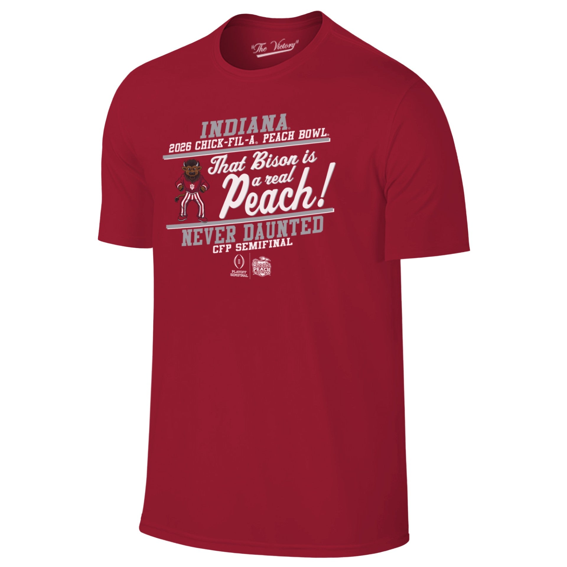 Hoo Hoo Hoo Hoosiers! This Indiana Football 2026 Peach Bowl shirt is a must-have for any IU fan. This Hoosiers postseason merch features a red body with a white/grey Peach Bowl Bison design that is perfect for celebrating the team's historic season. Make sure to grab this Indiana gear to showcase your Hoosier pride! This is an officially licensed collegiate product.