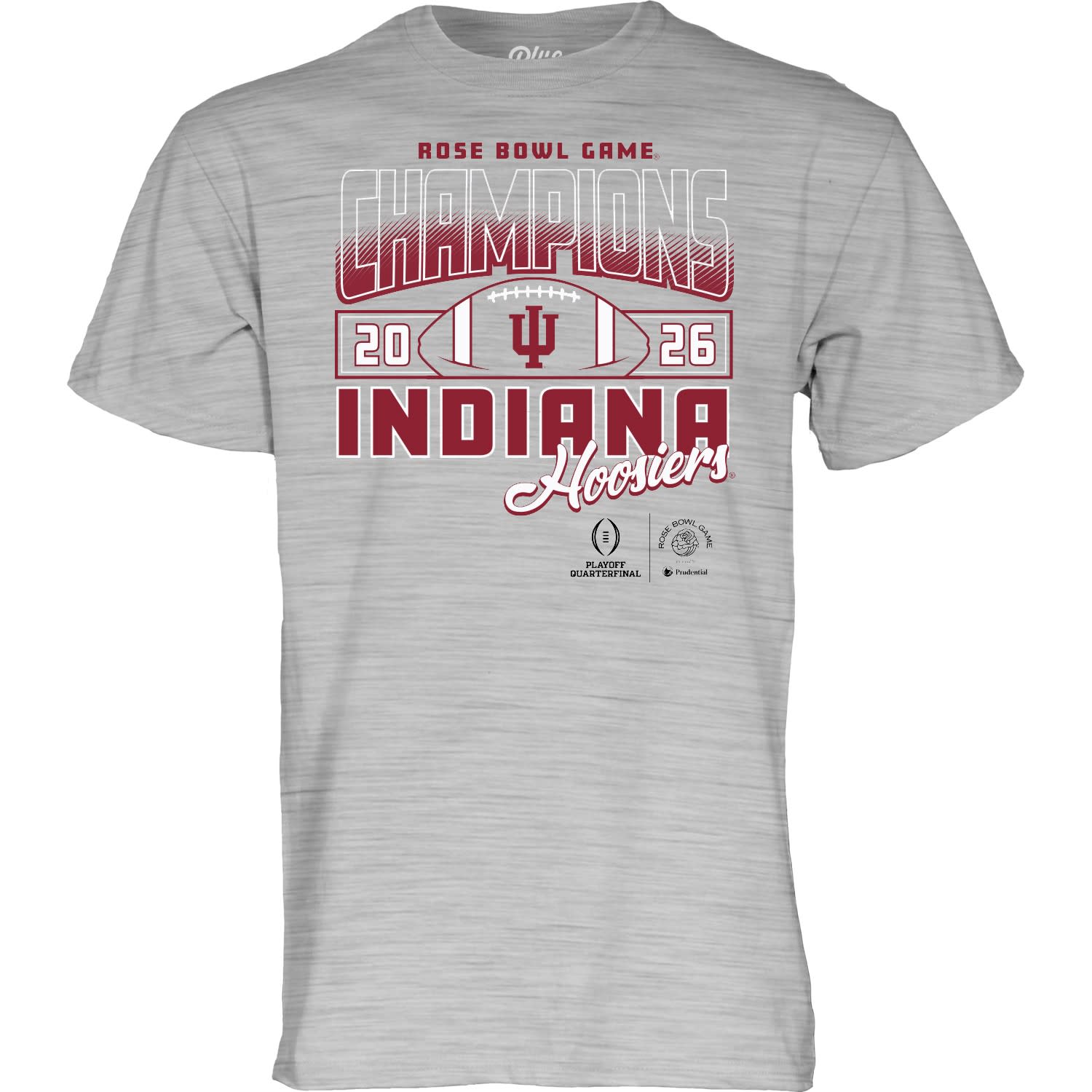 Go IU! Fight! Fight! Fight! This Indiana Football 2026 Rose Bowl Champions Grey T-Shirt will show that you are a true fan and is perfect for celebrating a historic season for the Hoosiers! This Rose Bowl Champs merch features a heather grey body with a white and red Rose Bowl Game Champions design. Make sure to get this one of a kind shirt today! This is an officially licensed collegiate product.