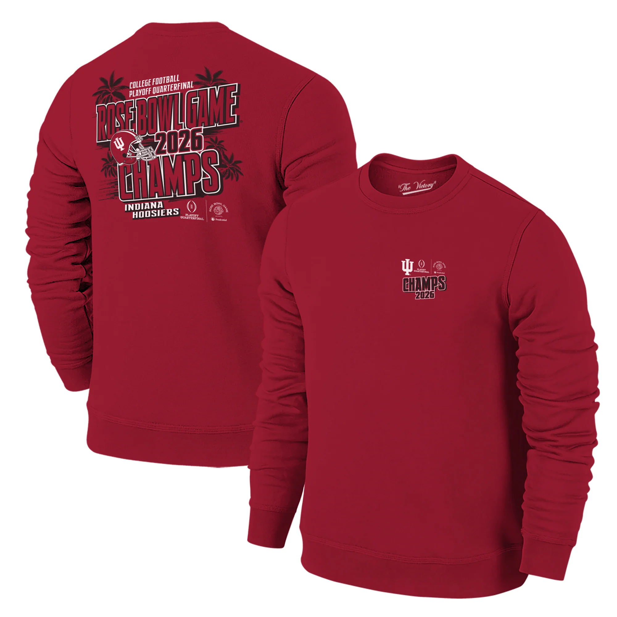Go IU! Fight! Fight! Fight! This Indiana Football 2026 Rose Bowl Champions Sweatshirt will show that you are a true fan and is perfect for celebrating the team's historic win! This IU sweatshirt features a red fleece body with a front patch and a large back design highlighting the Hoosiers' win. Make sure to get this Rose Bowl Champs merch today! This is an officially licensed collegiate product.