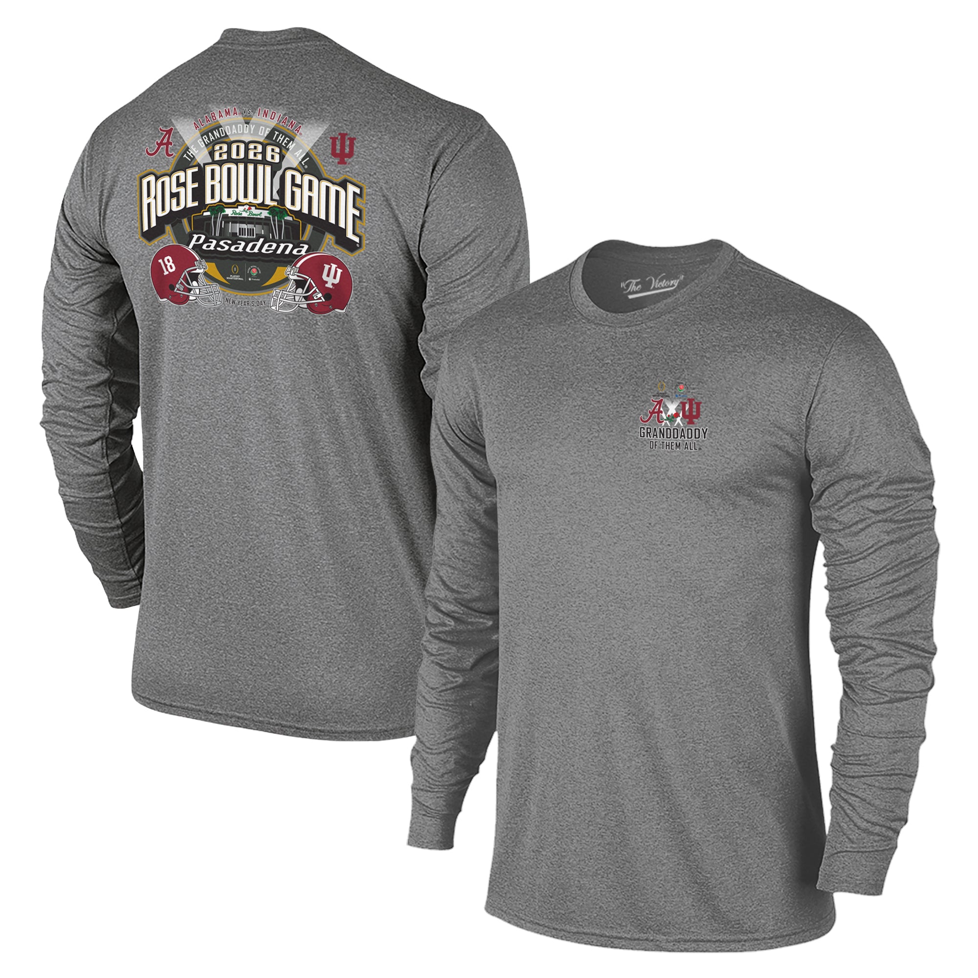 Go Big Red! Pick up this Indiana Football Rose Bowl head to head shirt to show your Indiana spirit everywhere you go. This long-sleeve tee features a grey body with a front/back Rose Bowl "Granddaddy of Them All" design perfect for Hoosier fans. Once people see you in this IU Rose Bowl merch, they’ll want one too! This is an officially licensed collegiate product.