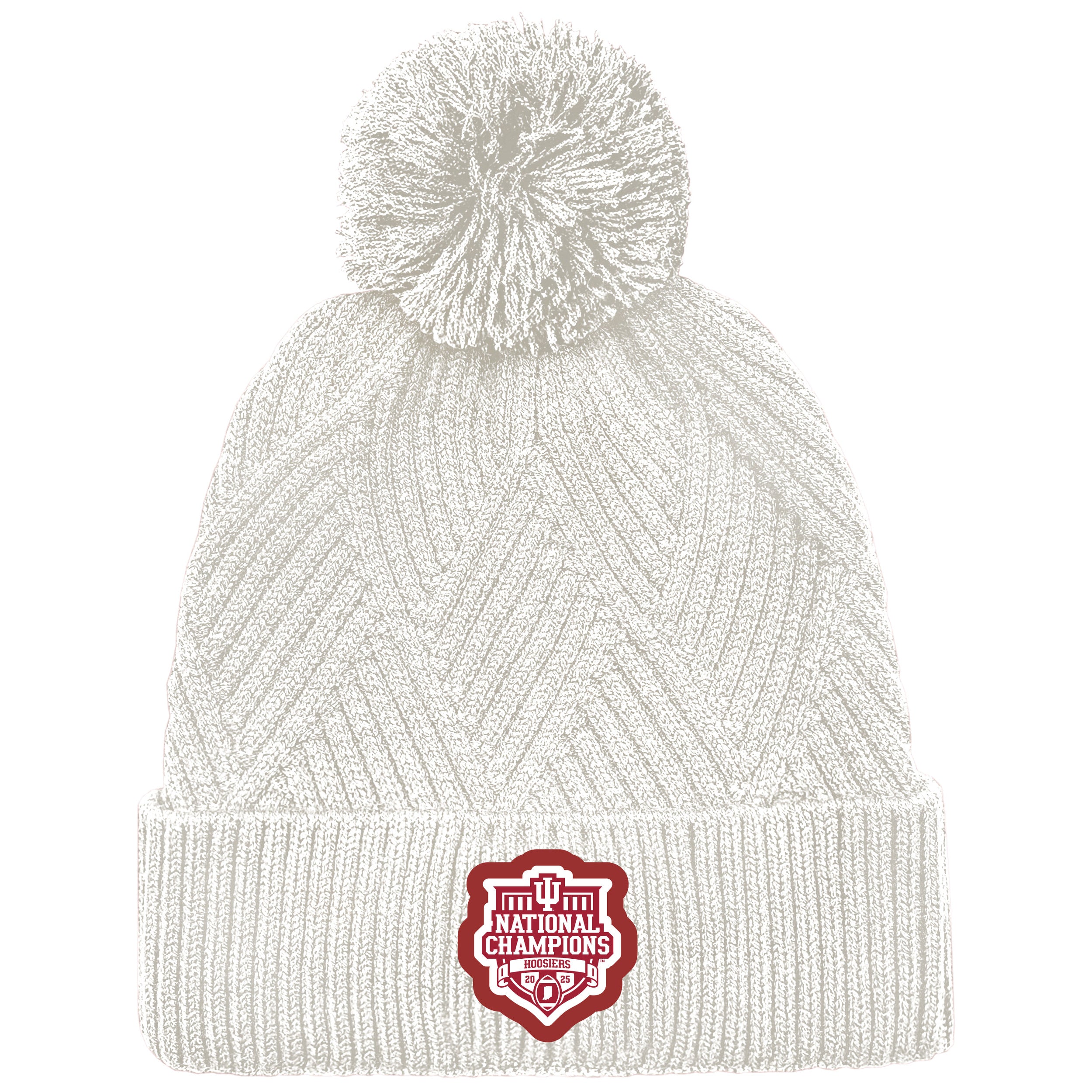 Go IU! Fight! Fight! Fight! This Indiana Football beanie will show that you are a true fan and is perfect for game days! This IU hat features a white knit body with a red National Champions patch and a pom on top. Make sure to get this Hoosiers hat today! This is an officially licensed collegiate product.