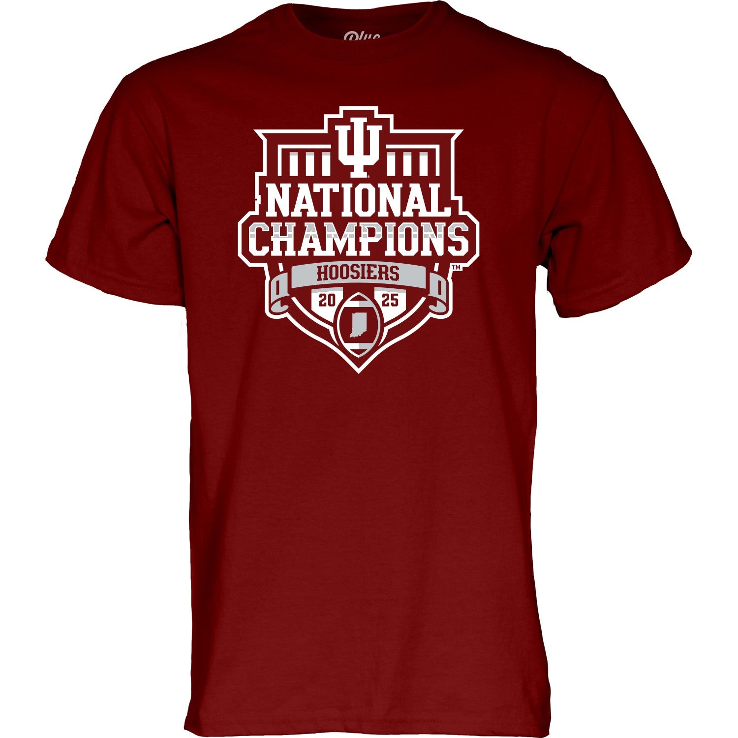 Go Hoosiers! This Indiana Football National Champions shirt is great for wearing to a game or just around campus! Featuring a red body with a large white National Champs shield logo, you will love this Hoosiers Football tee. This IU CFP merch makes it easy to show off your Indiana pride! This is an officially licensed collegiate product.
