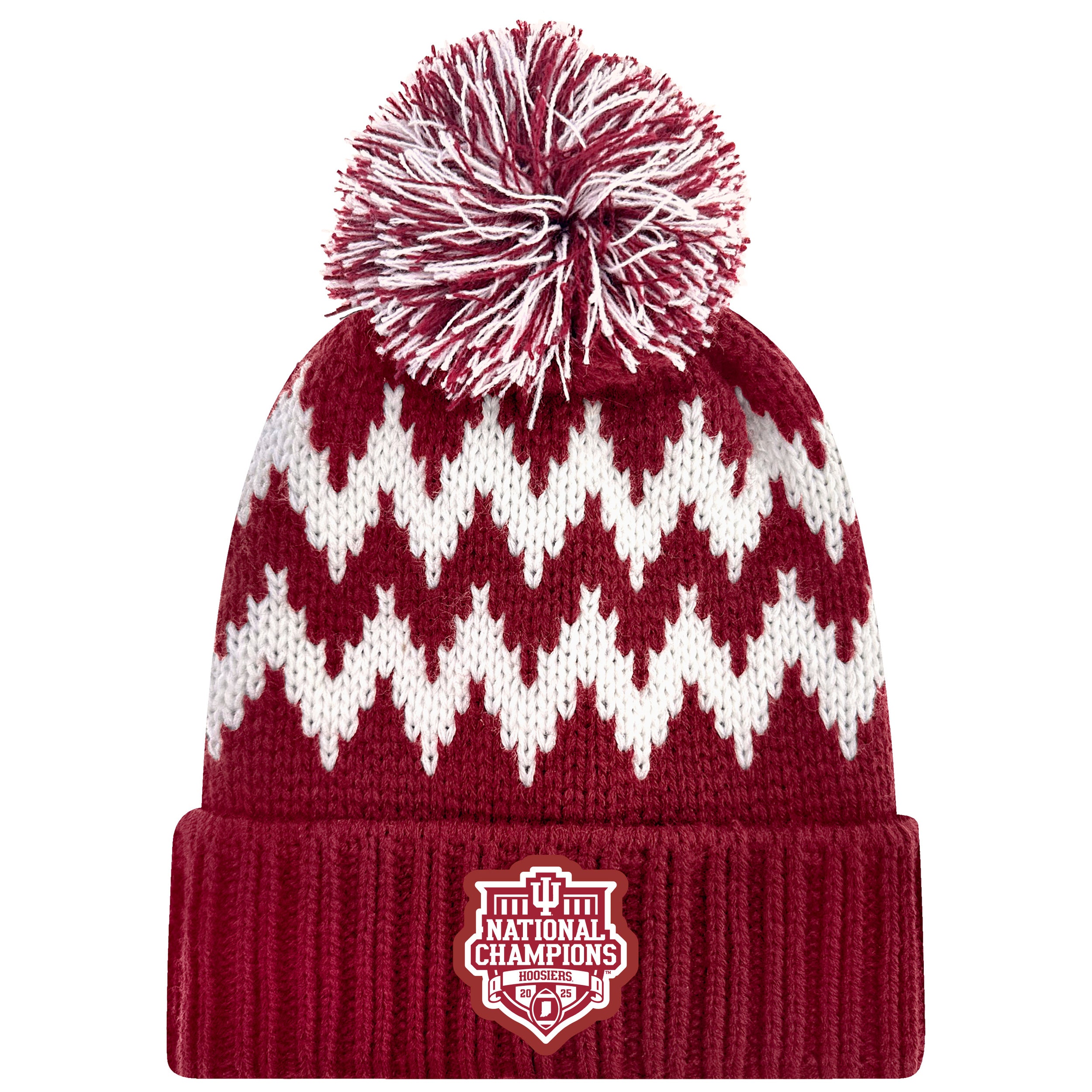 Go Hoosiers! This Indiana Football beanie is great for wearing to a game or just around campus! Featuring a red and white chevron pattern with a National Champions patch on the cuff and a pom on top, you will love this new IU hat. This Hoosiers winter hat makes it easy to show off your Indiana pride! This is an officially licensed collegiate product.
