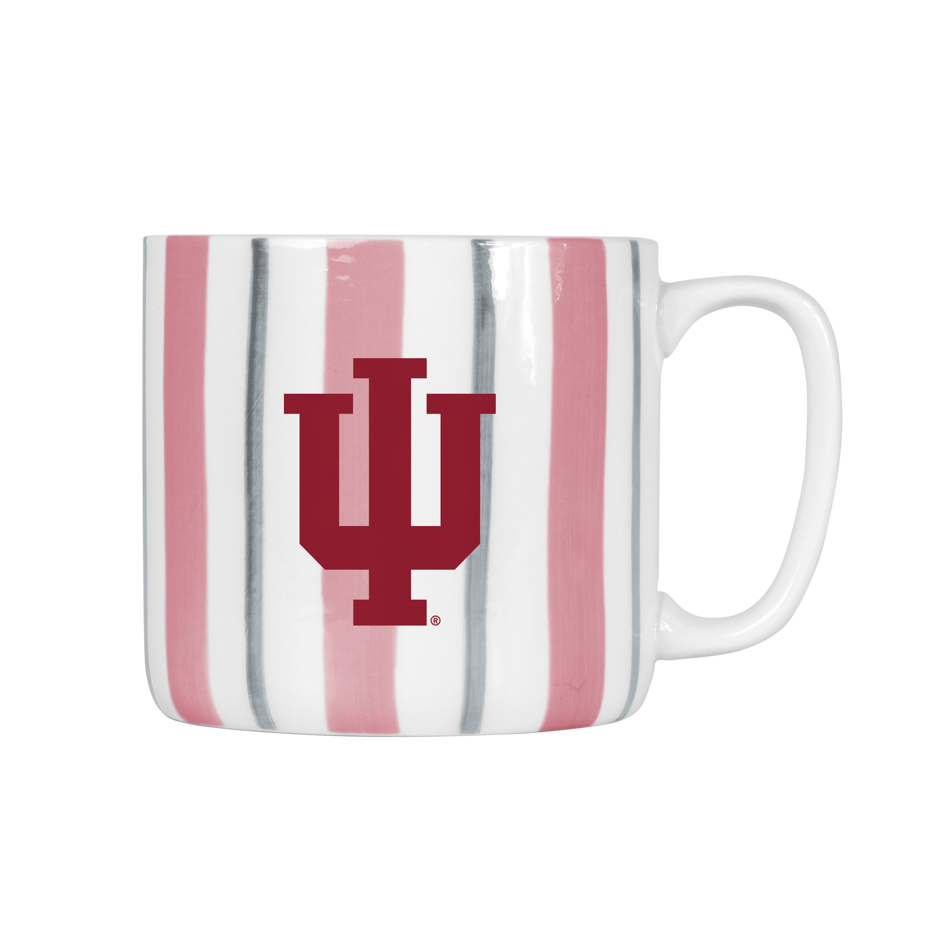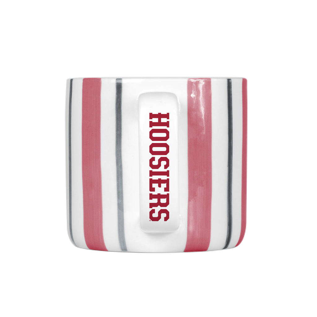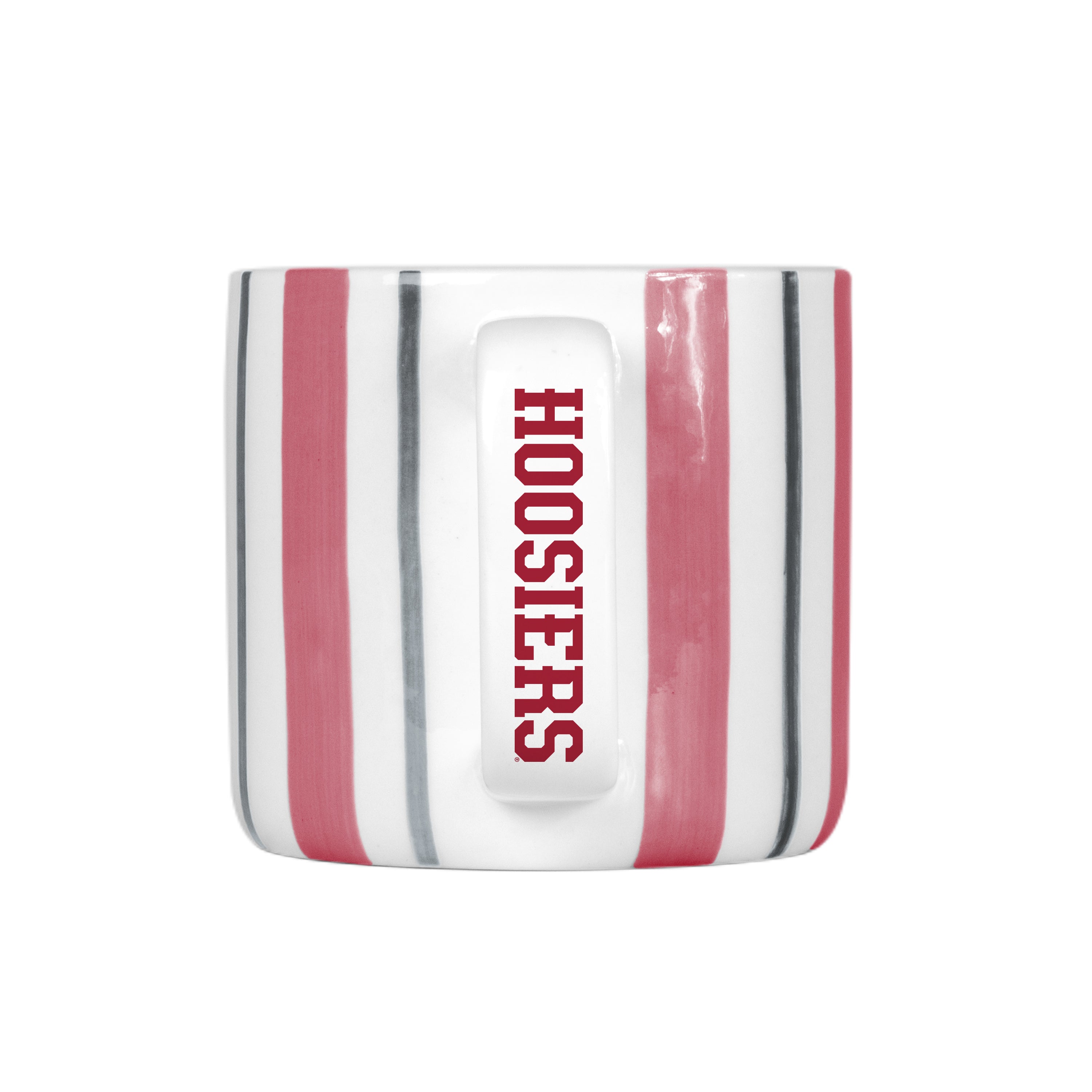 Show your candy-stripe pride with this Indiana mug! This 16oz mug features a white body with red/grey stripes, an IU trident on the side, and a red "Hoosiers" on the handle that makes it stand out. Whether you’re at a tailgate, the office, or home, this IU mug is the perfect way to rep Indiana! This is an officially licensed collegiate product.