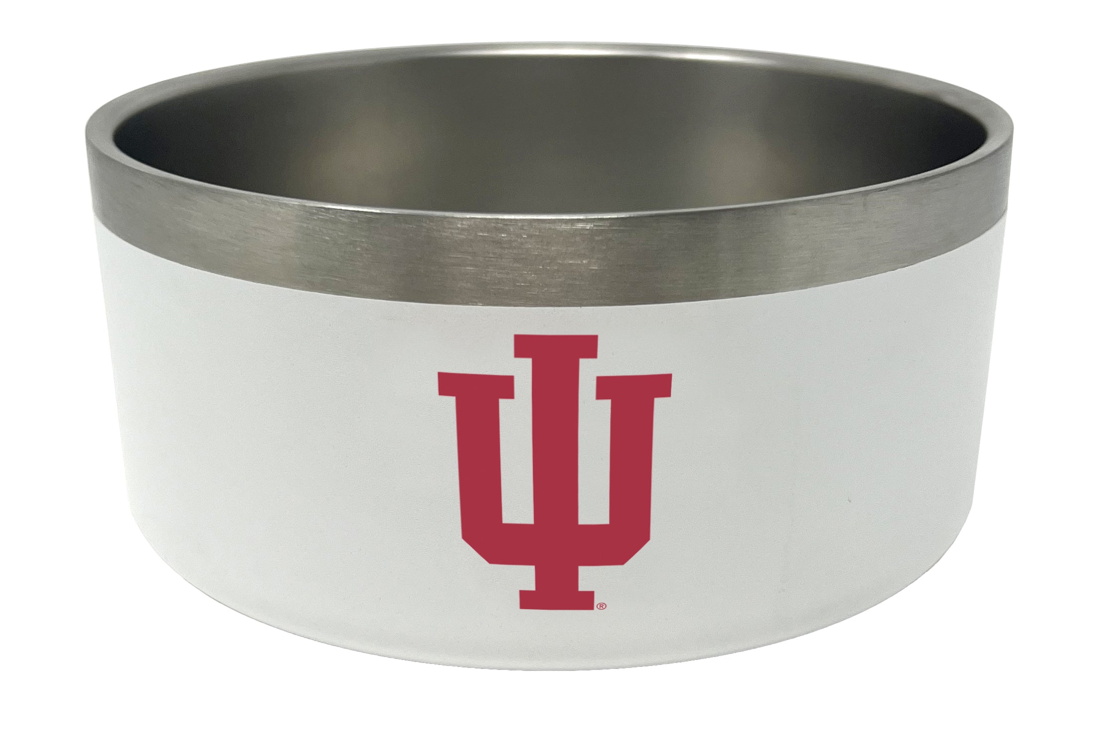 Go IU! Fight! Fight! Fight! This Indiana dog bowl will show that you and your furry friend are true fans! This dog bowl features a white stainless steel body with a red IU trident on the side. This bowl is available in a small and large size. Make sure to get this IU dog bowl today! This is an officially licensed collegiate product.