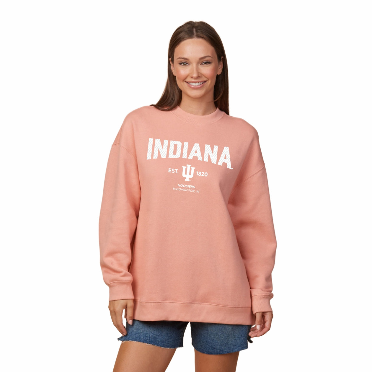 Show your Hoosier pride in this new Indiana sweatshirt! This women's crewneck features a soft pink body with a puff-print "Indiana Est. 1820" on the front perfect for showing off around campus. Impress your friends with this comfy new sweatshirt and make them wish they had one too! This is an officially licensed collegiate product.