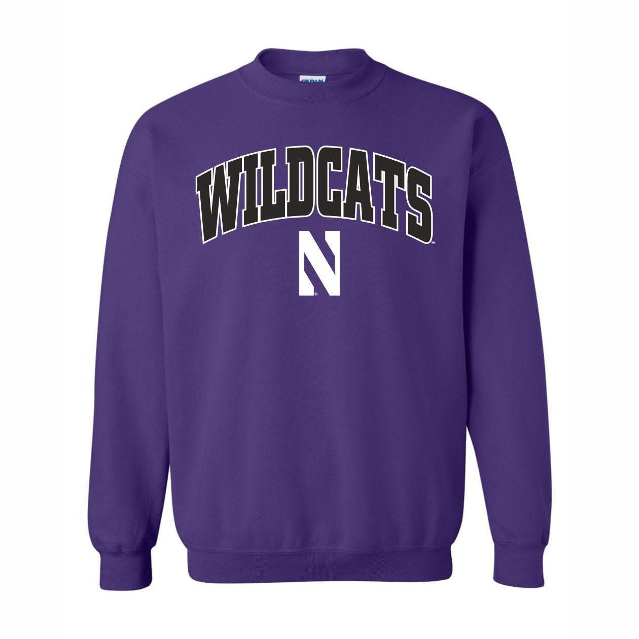 Hail to the Purple! This Northwestern sweatshirt is a great way to show your Wildcat spirit! This crewneck sweatshirt features a purple body with a black "Wildcats" over a white N logo that is great for any occasion. Make sure to pick up this NU pullover to show off at games! Shop the Official Team Store of Northwestern Athletics for Northwestern apparel or gifts! This is an officially licensed collegiate product.