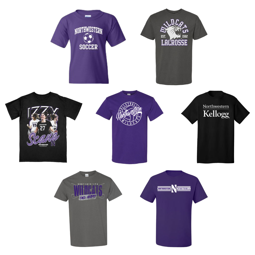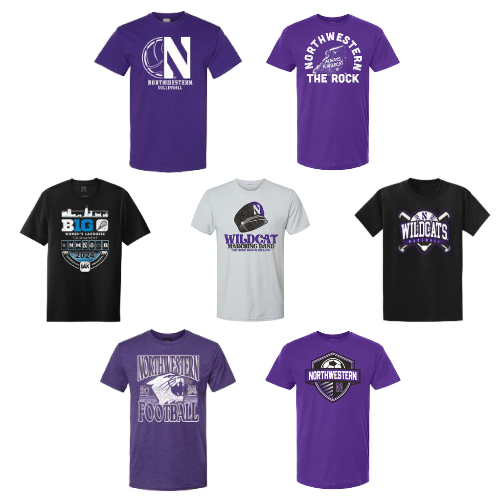 Hail to the Purple! This Northwestern T-Shirt Mystery Box is a great way to show your Wildcat spirit! Each Mystery T-Shirt Box contains five unique Northwestern designs in a single selected size. Designs may overlap in multiple orders. Designs may include but are not limited to those featured in the above images. Limited availability. All sales final, no returns or exchanges. While supplies last, online only. This is an officially licensed collegiate product.