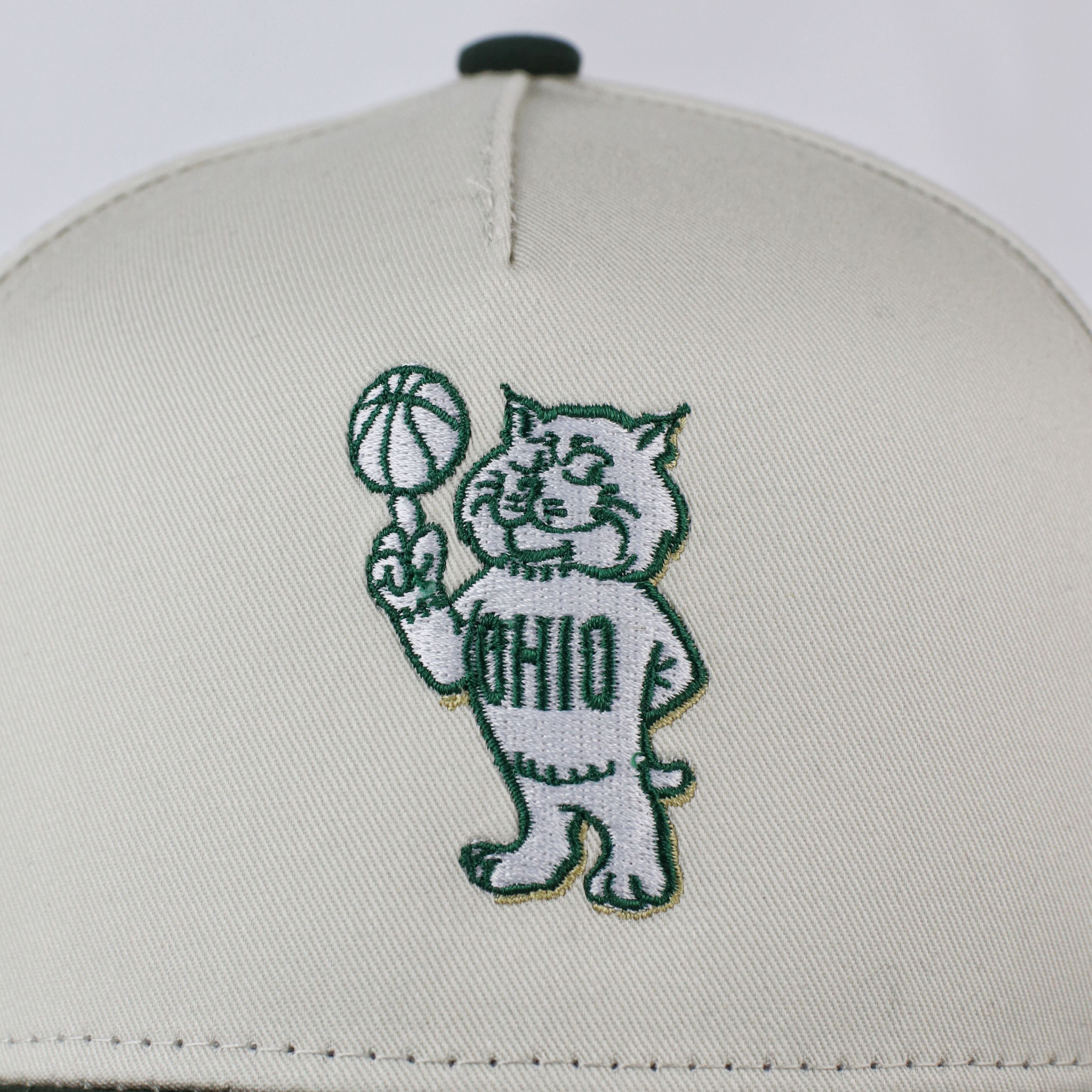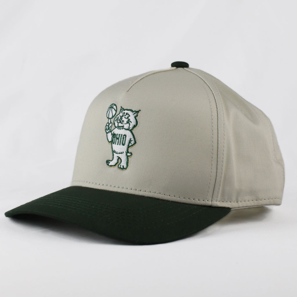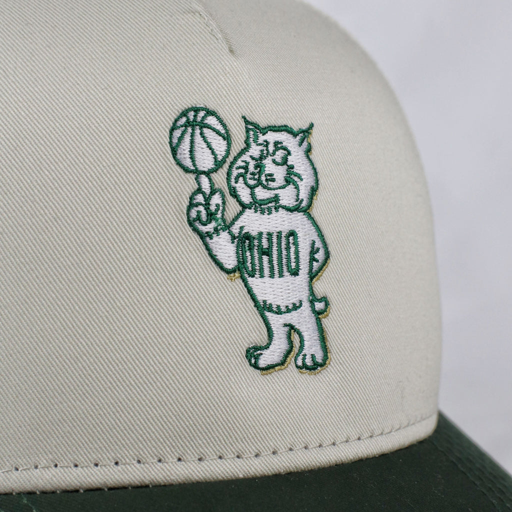 Celebrate a century of tradition. Pick up this Ohio Basketball hat to impress your friends and show your Bobcat pride! Once they see you wearing this special-edition Rufus the Bobcat hat, they’re going to want one too! It features a tan body with a green brim, green/white Rufus Basketball logo embroidered on the front, and an adjustable snapback. It is perfect for showing your Ohio pride at games, tailgates, or around campus! Shop the Official Fanstore of the Ohio Bobcats for Bobcat apparel! This is an officially licensed collegiate product.